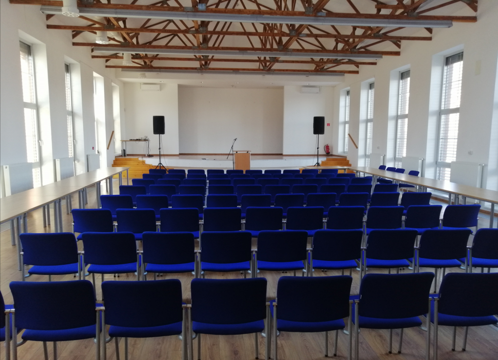 Spoločenská sála: kapacita max. 220 osôb, javisko so zázemím pre účinkujúcich, bez ozvučenia, so základným osvetlením sály, klimatizácia