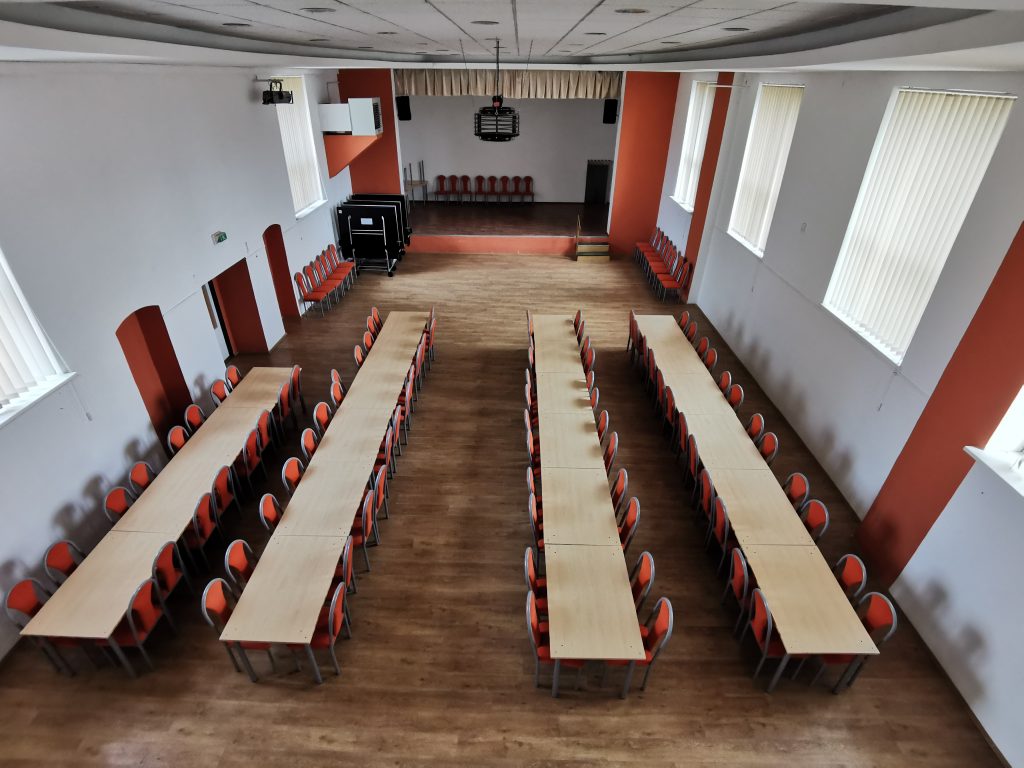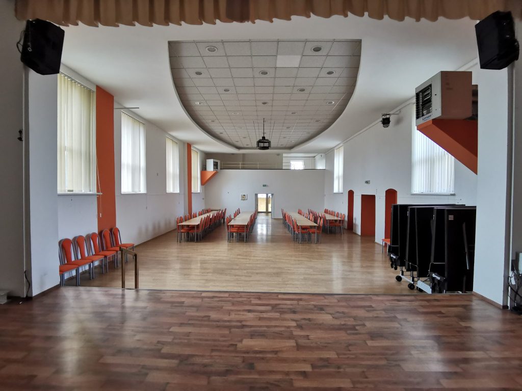 Spoločenská sála – kapacita 120 miest s javiskom a zázemím pre účinkujúcich, základné osvetlenie, bez možnosti prenájmu ozvučovacej techniky